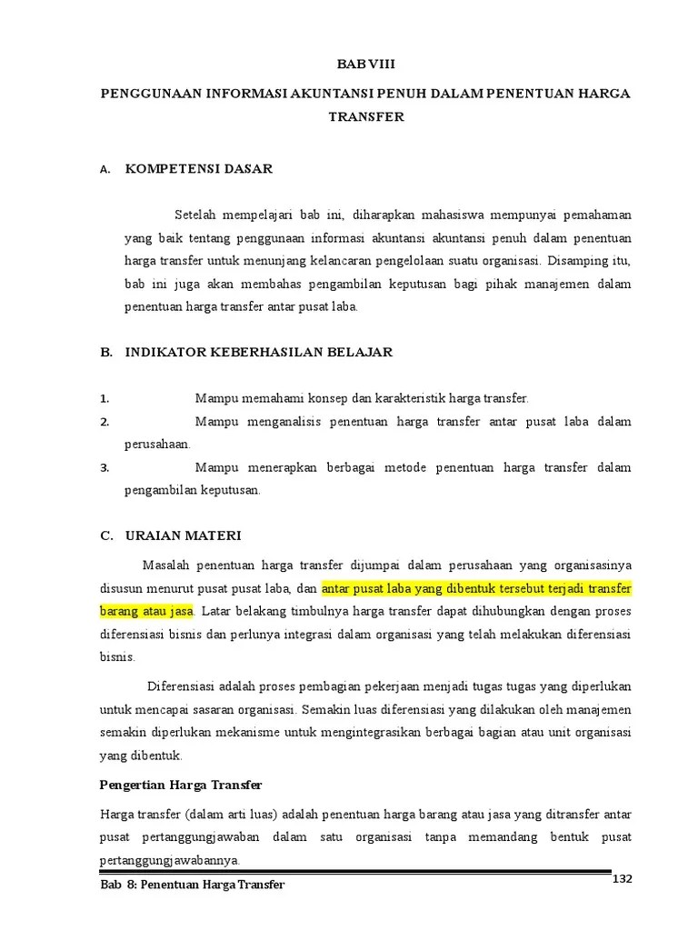 Dalam arti luas harga tansfer adalah harga barang atau jasa yang ditransfer antar pusat pertanggung jawaban tujuan penetapan harga transfer.